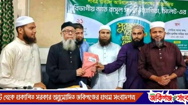 বৃহস্পতিবার (৯ অক্টোবর) বাদ আসর জকিগঞ্জ কেন্দ্রীয় জামে মসজিদে জকিগঞ্জ প্রেসক্লাবের পক্ষ এক দোয়া মাহফিল অনুষ্ঠিত হয়। জকিগঞ্জ প্রেসক্লাবের যুগ্ম সম্পাদক এনামুল হক মুন্নার সার্বিক ব্যবস্থাপনায় আয়োজিত এ দোয়া মাহফিলে দোয়া পরিচালনা করেন জকিগঞ্জ কেন্দ্রীয় জামে মসজিদের ইমাম ও খতিব মাওলানা মুফতি আবুল হাসান। এ সময় বিপুল সংখ্যক মুসল্লি ও ধর্মপ্রাণ ব্যক্তিবর্গ উপস্থিত ছিলেন। পরে শিরনী বিতরণের মাধ্যমে দোয়া মাহফিলের কাজ সমাপ্ত হয়।